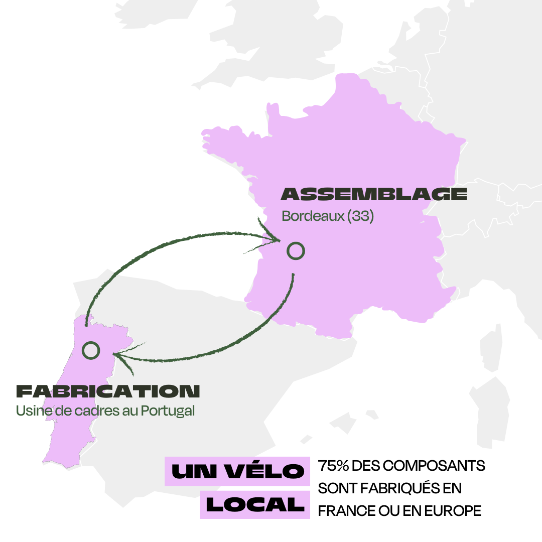 Ainsi, nos vélos sont conçus, peints et assemblés à Bordeaux dans nos propres locaux.