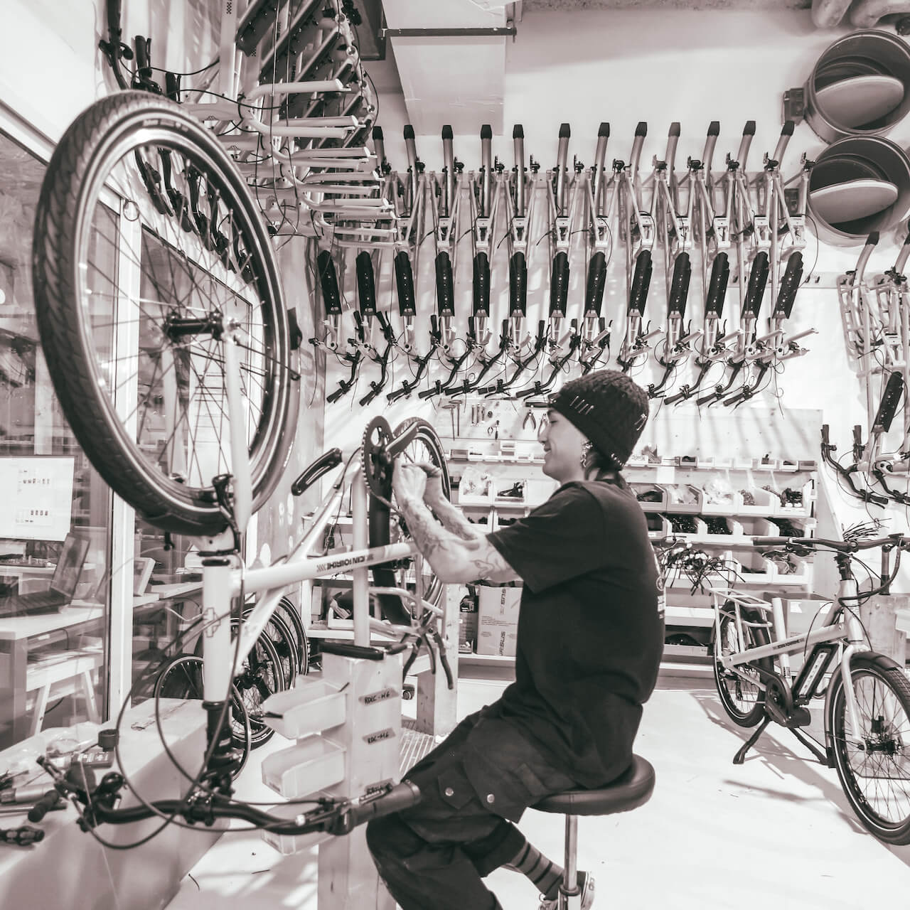 Le découpage des opérations et la création de production en série, permet de gagner énormément de temps sur l’assemblage d’un vélo complet.
