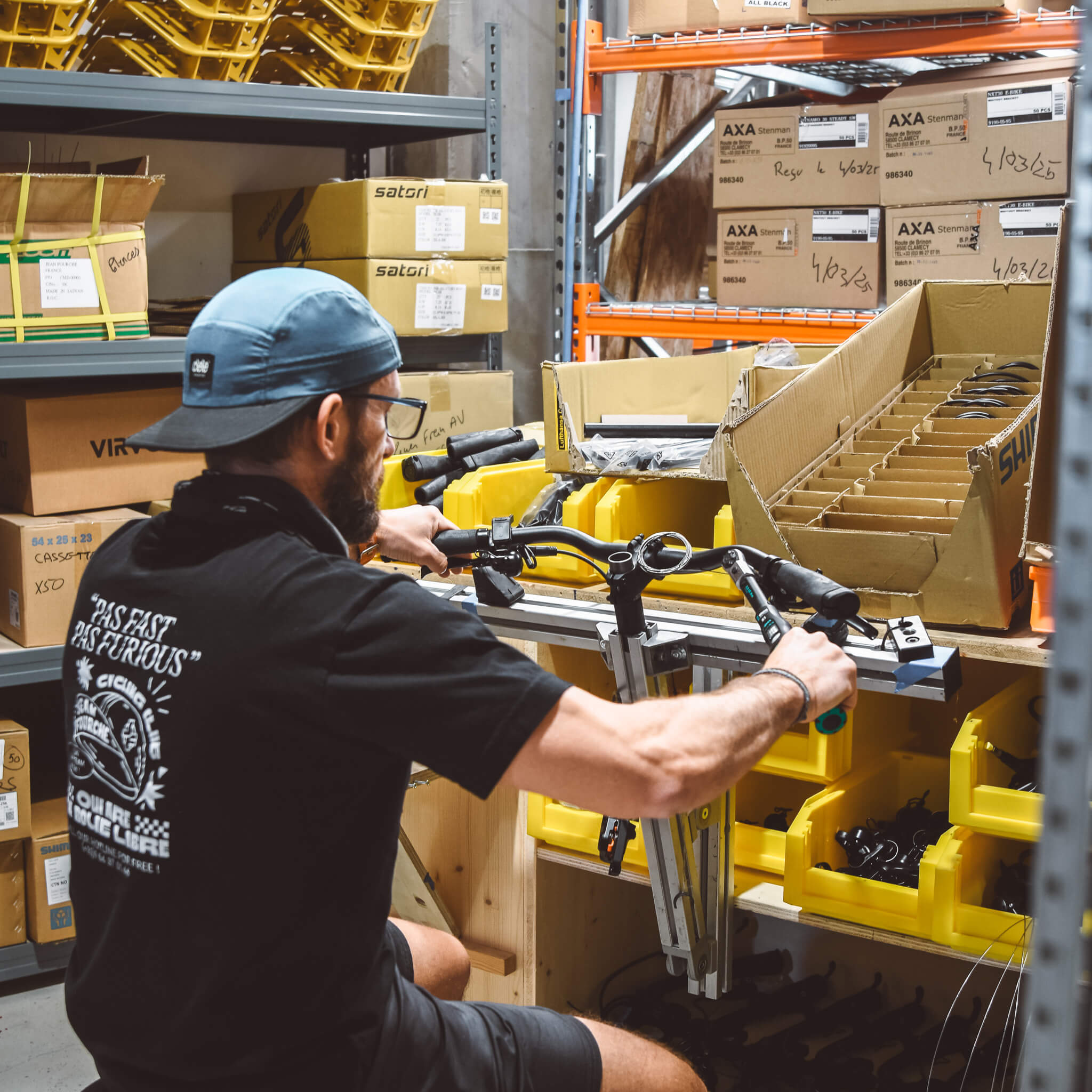 | Assemblage | Dans notre atelier de Bordeaux, nous réalisions la préparation et la création de sous-ensembles, l’assemblage complet des vélos, le conditionnement, le contrôle qualité et la préparation pour leur livraison. |