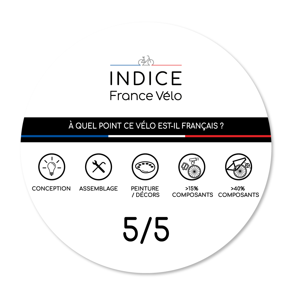 L’Indice France Vélo est un label qui valorise les vélos conçus, assemblés et fabriqués en France, afin de fournir une information claire et transparente aux consommateurs.