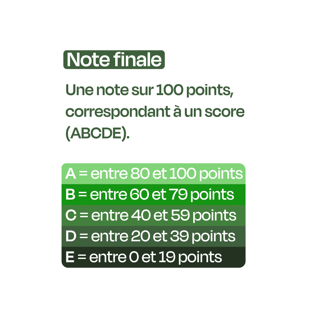 La note affichée, entre A et E, s’appuie autant sur le produit que sur ses conditions de fabrication.