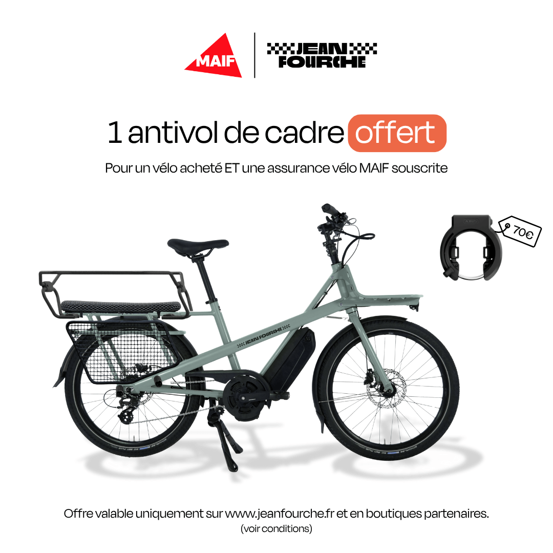 Pour un vélo Jean Fourche acheté ET une assurance vélo MAIF souscrite, nous vous offrons un antivol de cadre.