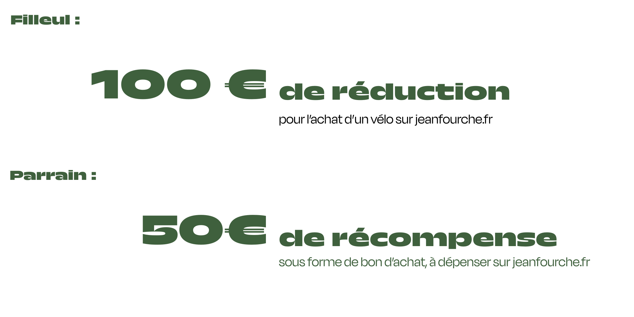 Chaque fois qu’une personne achète un vélo Jean Fourche via votre lien de parrainage, vous recevez 50€ de bon d’achat sur notre site internet.