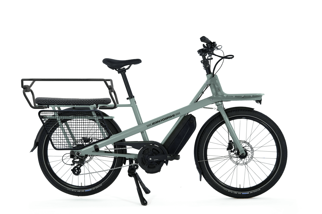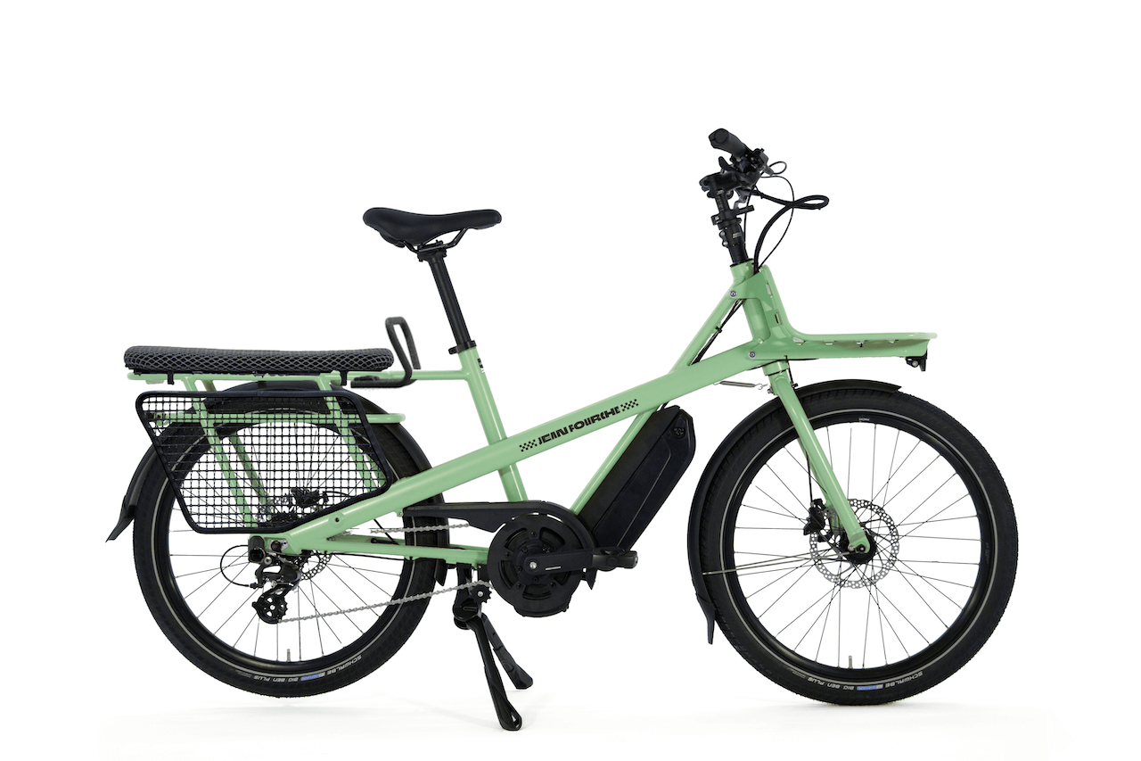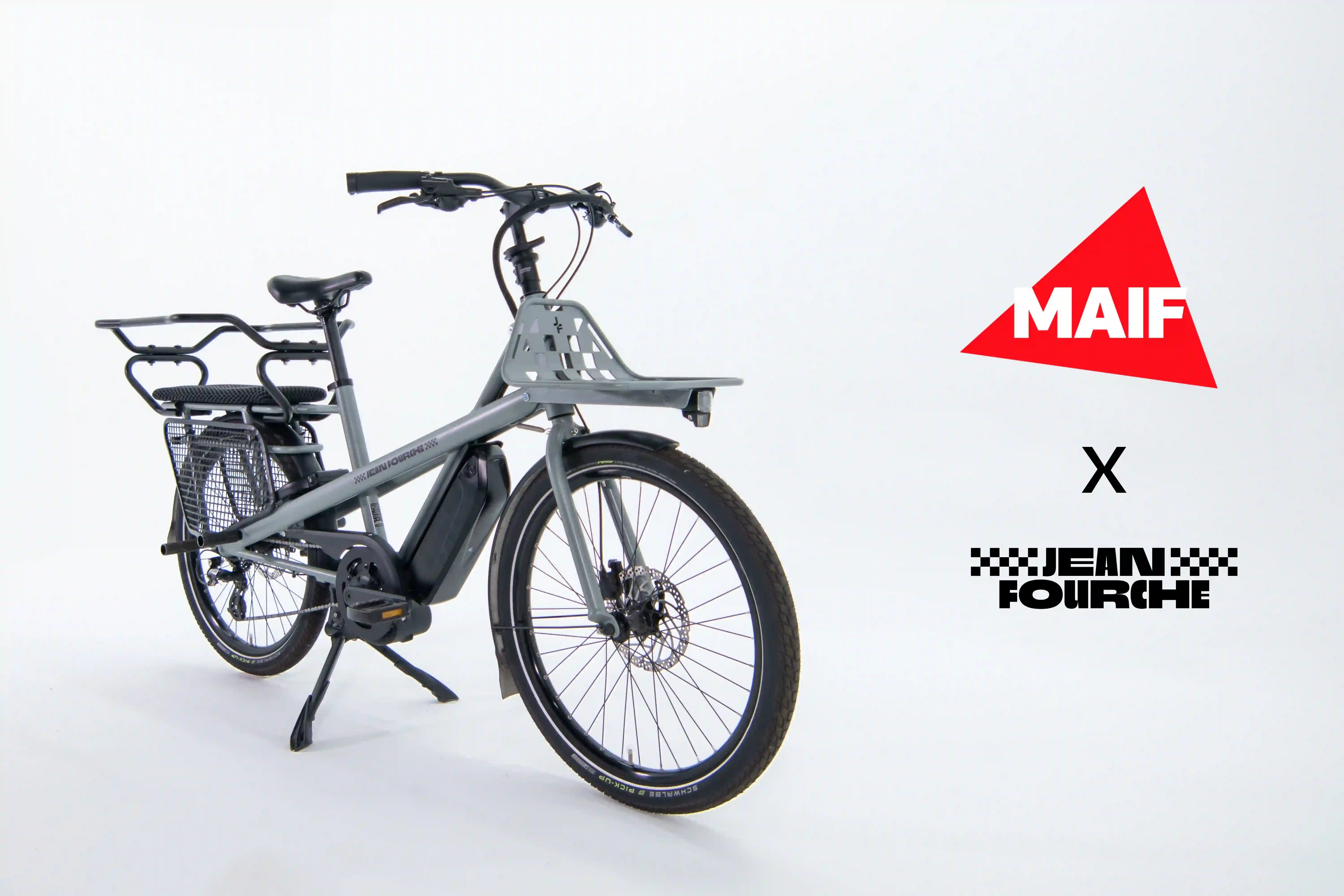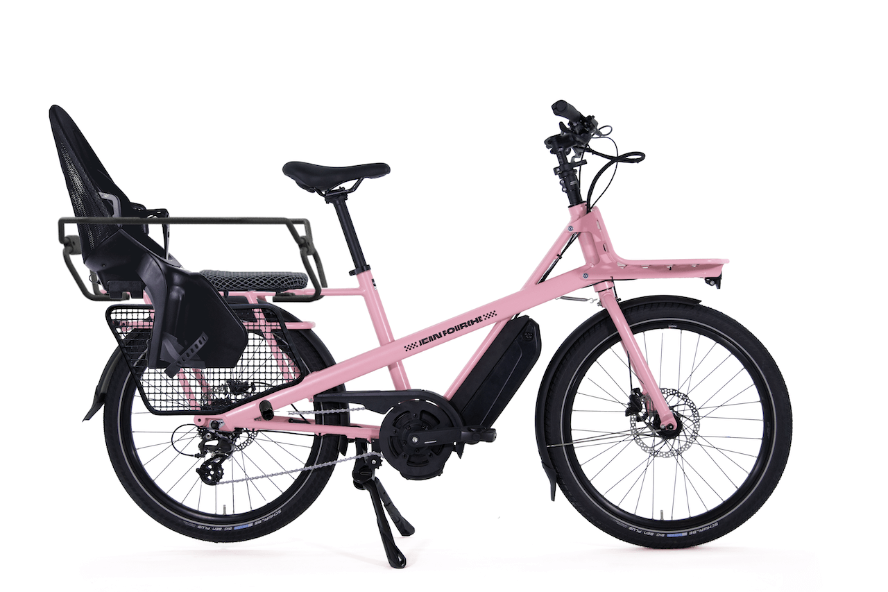 Jean Fourche propose un vélo cargo compact, à la frontière entre le vélo de ville et le vélo cargo. Un atout au quotidien pour qui aime emporter avec lui des passagers ou tout son nécessaire à vivre.