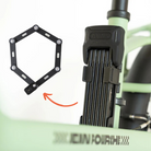 Cet antivol pliable s'adapte parfaitement sur le cadre des vélos Jean Fourche, compact et très résistant.